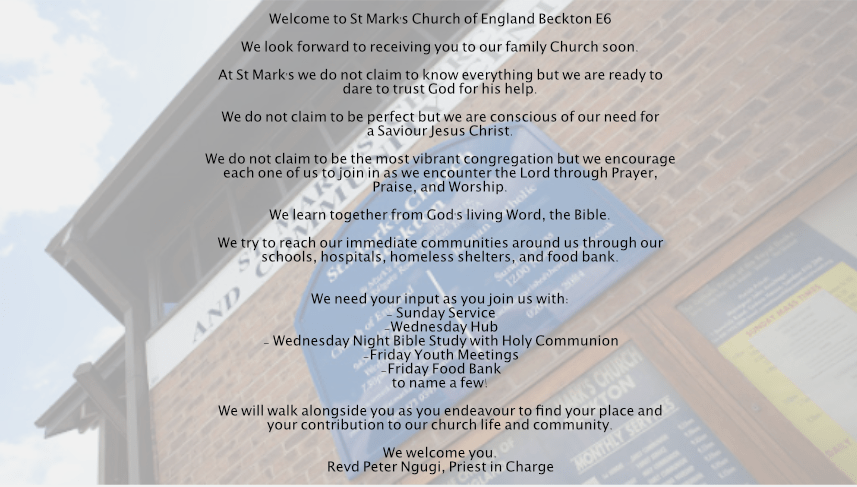 Our vision is to be a loving, welcoming, friendly, family, and community centred church, growing in the love and service of God to the communities in Beckton, E6 and beyond.